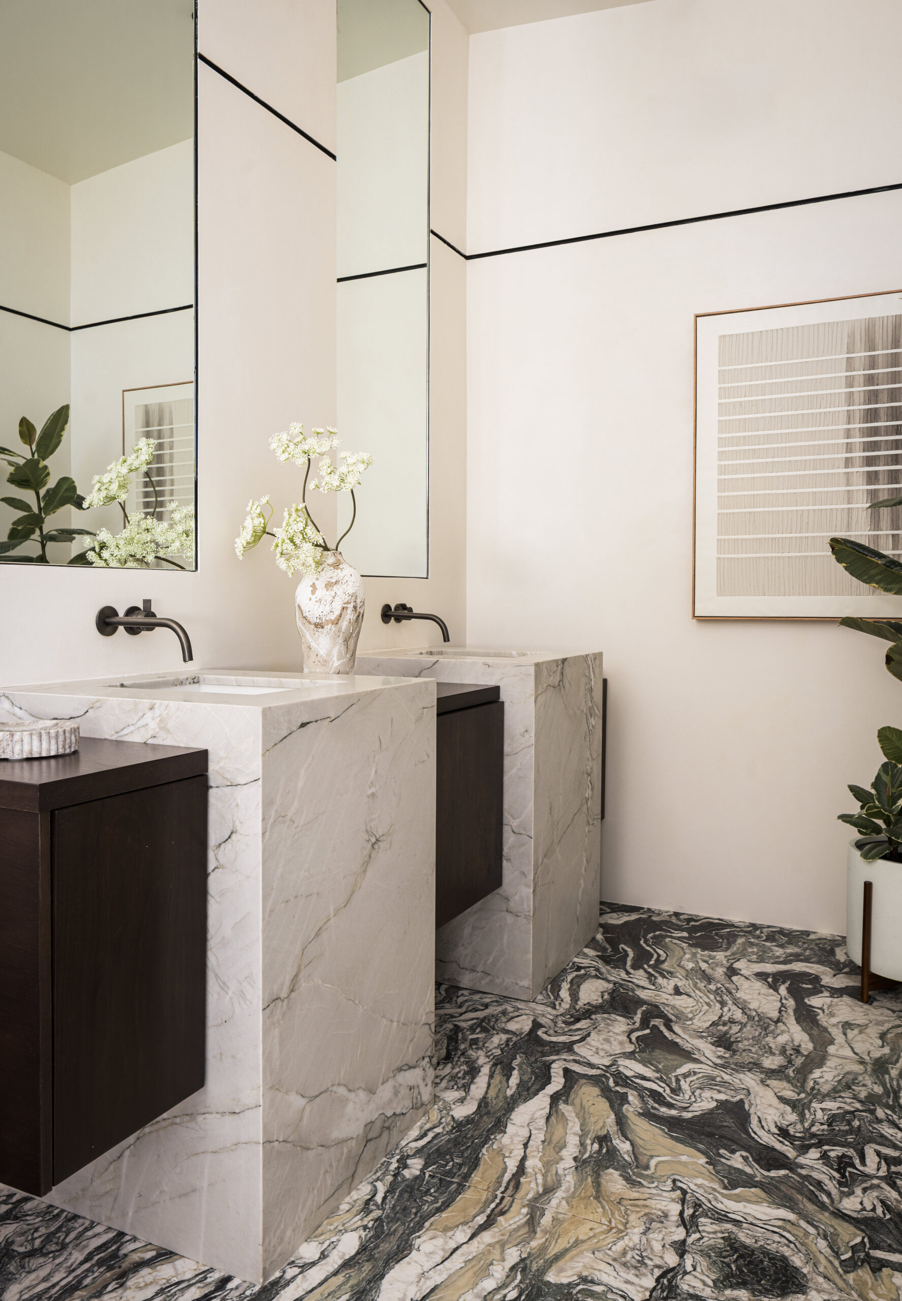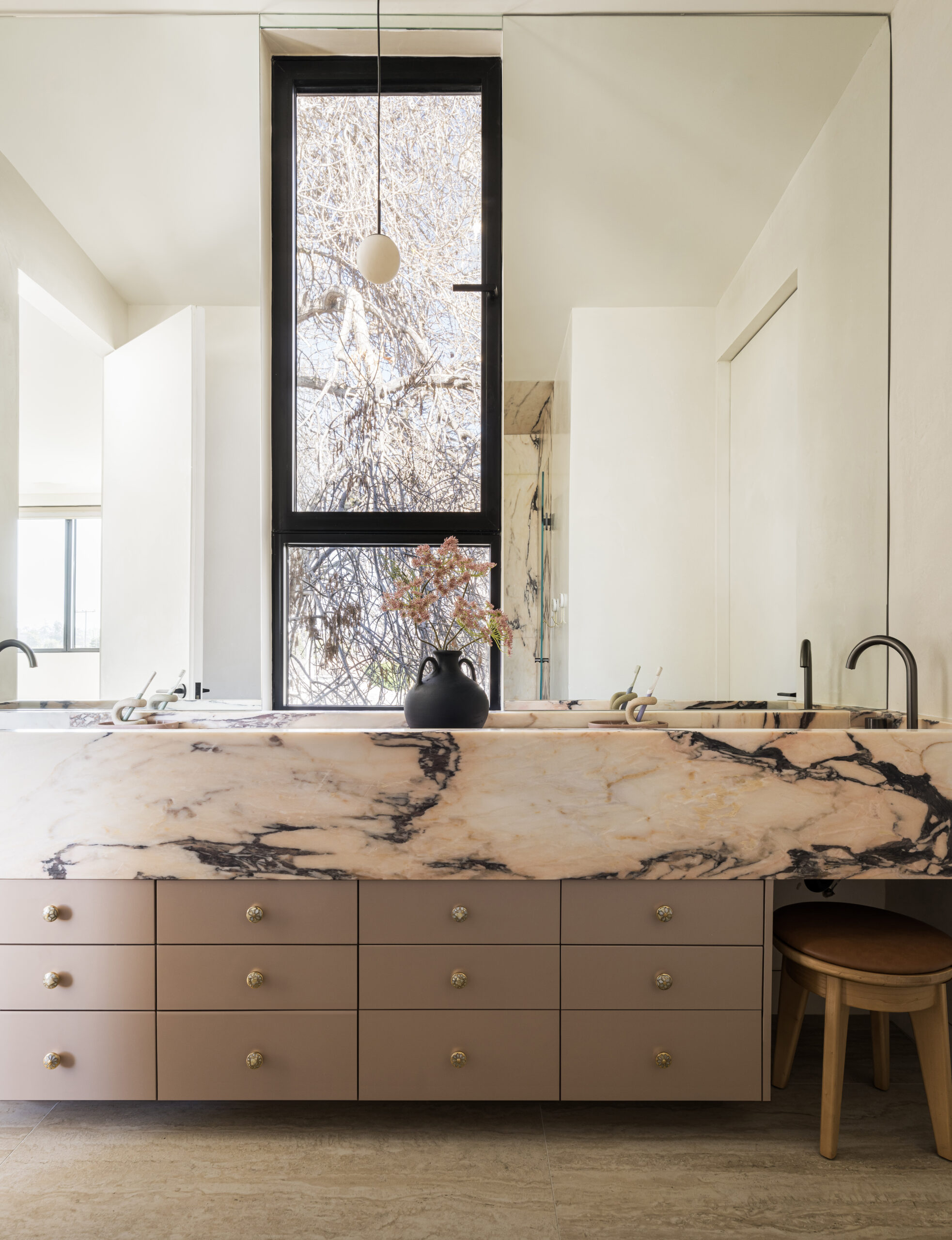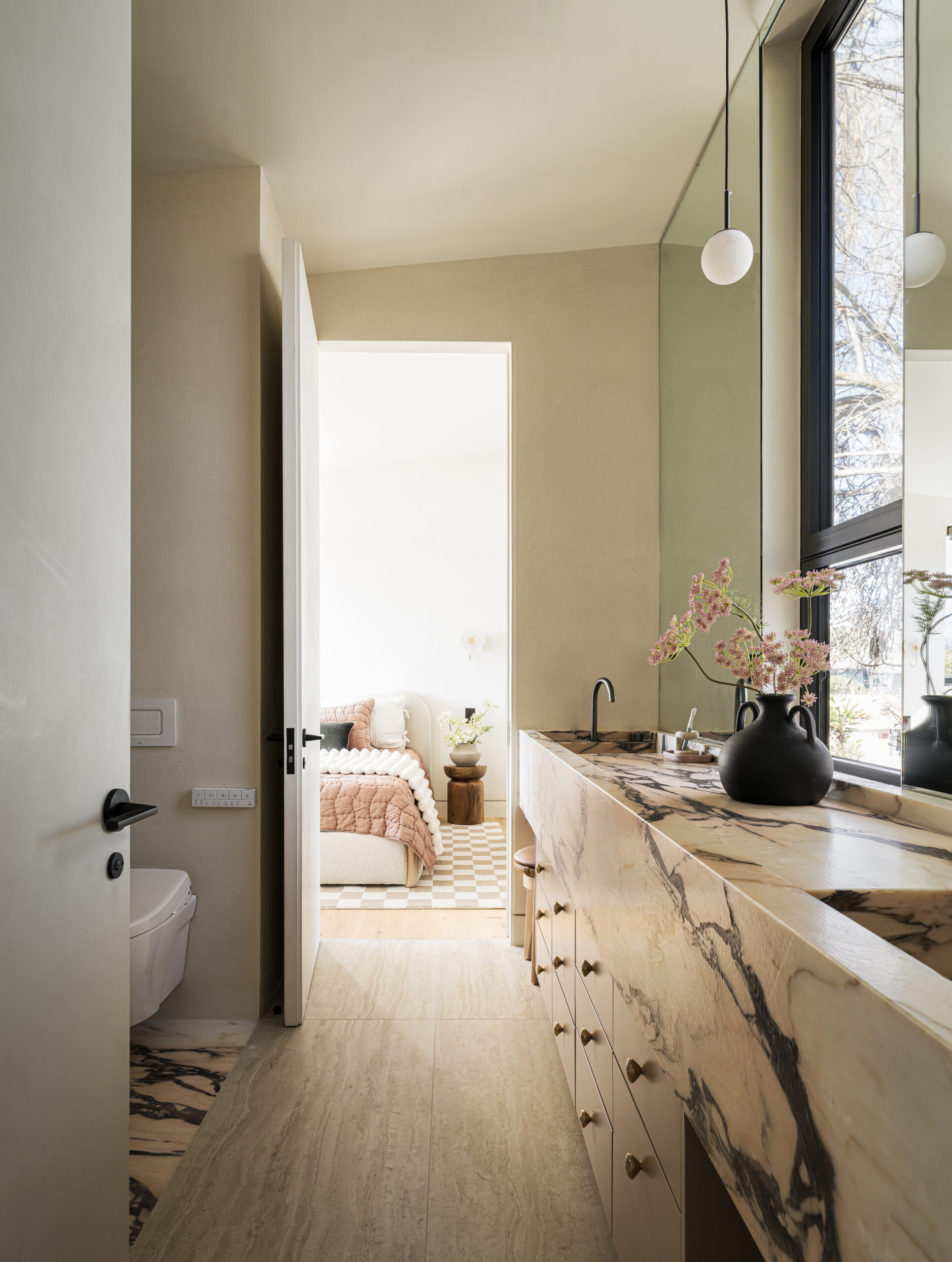 Here, as a small example of our interior design approach, let’s take a closer look at the shared bathroom situated between the two sisters’ bedrooms. This space is thoughtfully designed to balance functionality and elegance, providing both privacy and convenience for the siblings. The layout ensures efficient use of space while maintaining a harmonious connection to the overall design theme. Details such as streamlined fixtures and thoughtful material choices contribute to a sense of comfort and practicality, embodying the broader vision of the home’s interior design.