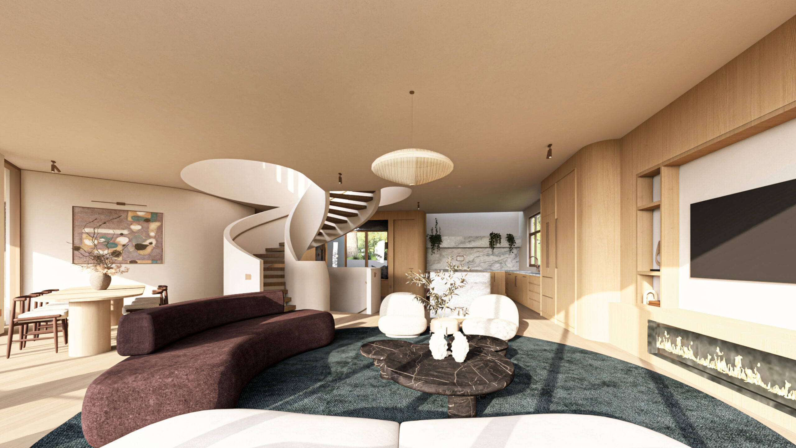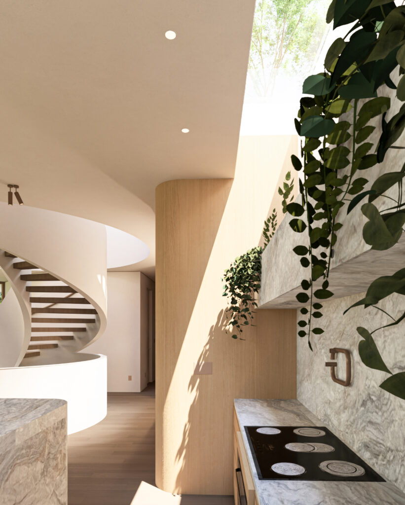 At Mahya Salehi Studio, integrating soft curves has become one of our signature elements, not as a stylistic flourish, but as a fundamental approach to human-centered design. Whether it’s a gentle archway that frames a dining area, a curved kitchen island that encourages gathering, or the sweeping roofline of an entire residence, these soft elements serve as counterpoints to the harder realities of urban life.